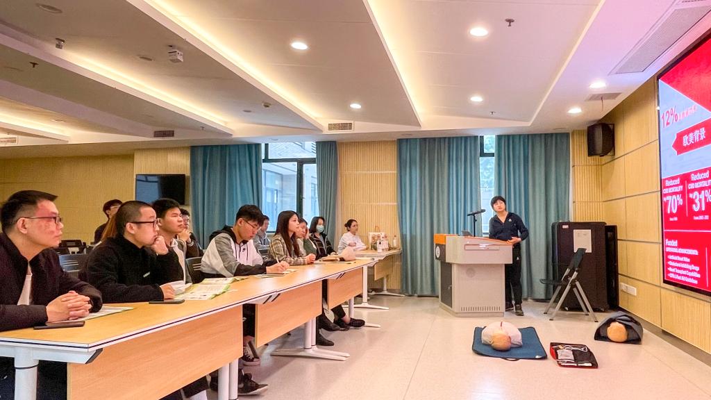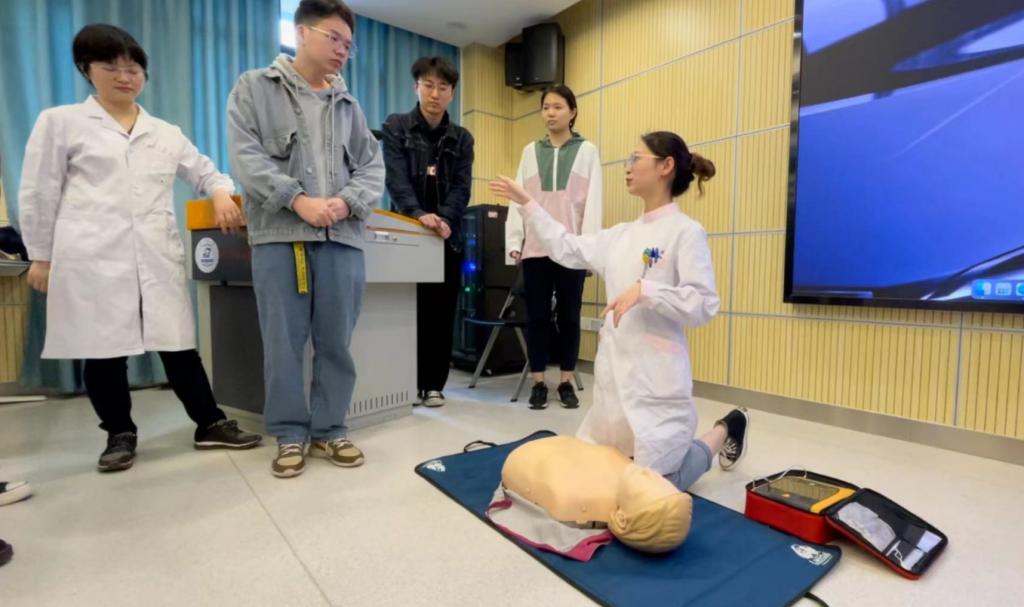 战“疫”的成功离不开广大医护人员的付出。对于党员个人而言,掌握必要的急救知识和技能也有利于在应急救援中挽救更多的生命,更好地发挥党员先锋模范作用。观展结束后,党支部于机械大楼A304会议室开展急救知识培训。於晓雪为大家介绍了心肺复苏术的普及意义和具体操作方法,以及校园AED的位置分布和使用方法。