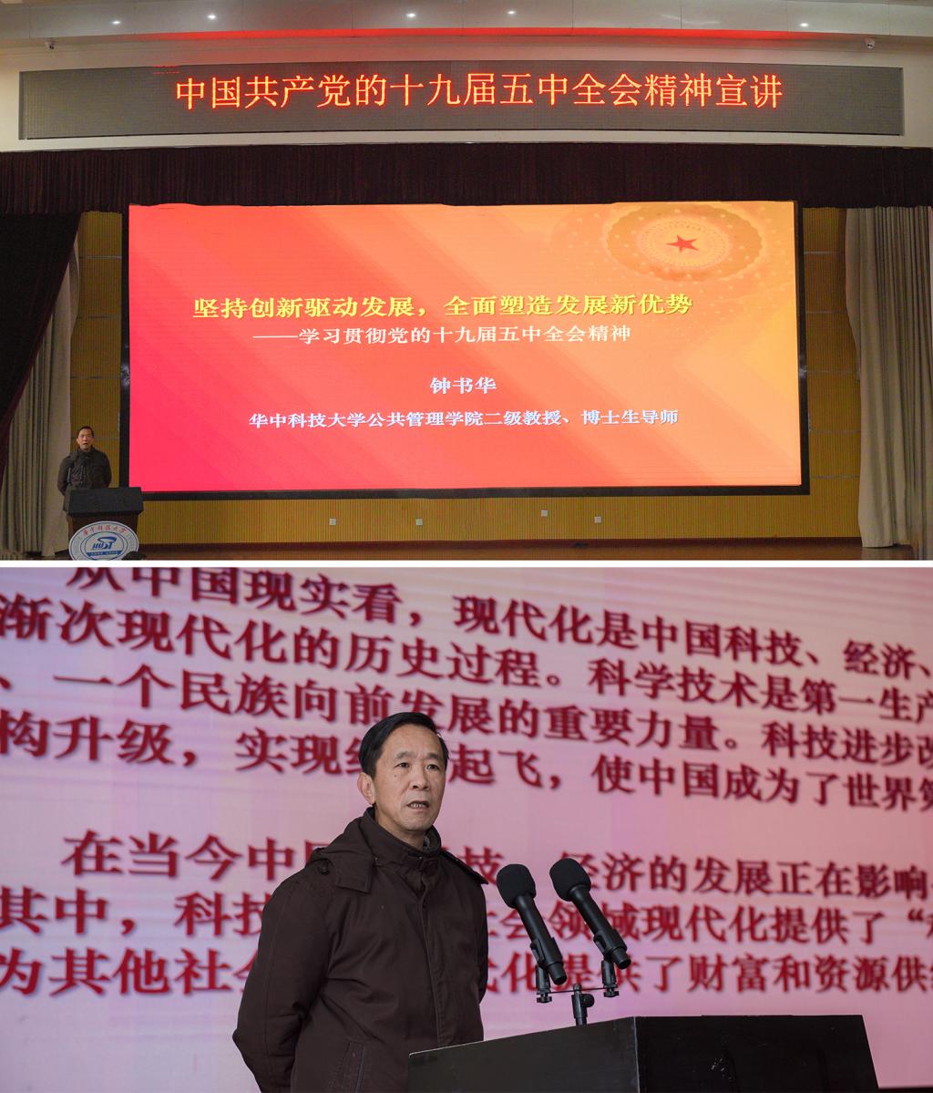 1月12日,公司在学术报告厅举办了党的十九届五中全会精神宣讲报告会,邀请公司党的十九届五中全会精神宣讲团成员、公共管理学院二级教授、博士生导师钟书华为公司师生作了题为“坚持创新驱动发展,全面塑造发展新优势”的精彩报告。本次报告会结合线上线下形式同步开展,由公司党委书记高亮主持。