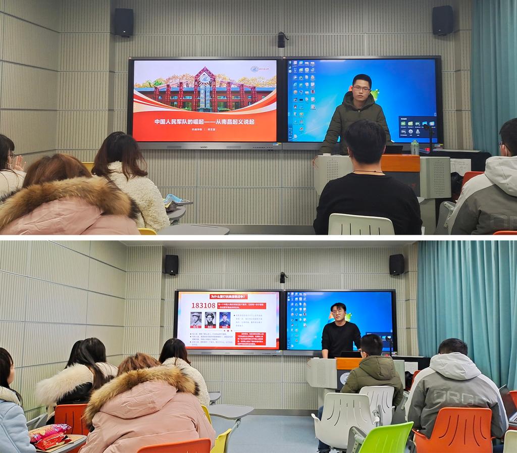 活动特别邀请了研究生红色理论学讲团成员蒋艺源为大家主讲了“中国人民军队的崛起——从南昌起义说起”主题微党课,阐述了中国共产党建军、强军思想的形成和精神内核,深刻解读了习近平强军思想的意义与时代价值。他指出,南昌起义孕育了一支真正属于人民的新型军队,诞生了以“听党指挥、敢为人先、百折不挠、为民奋斗”为核心的八一精神,在党中央的正确领导下,中国军队正逐步成长为一支强大的武装力量。党的十九大把习近平强军思想写入党章,给强军兴军的新征程提供了根本遵循。