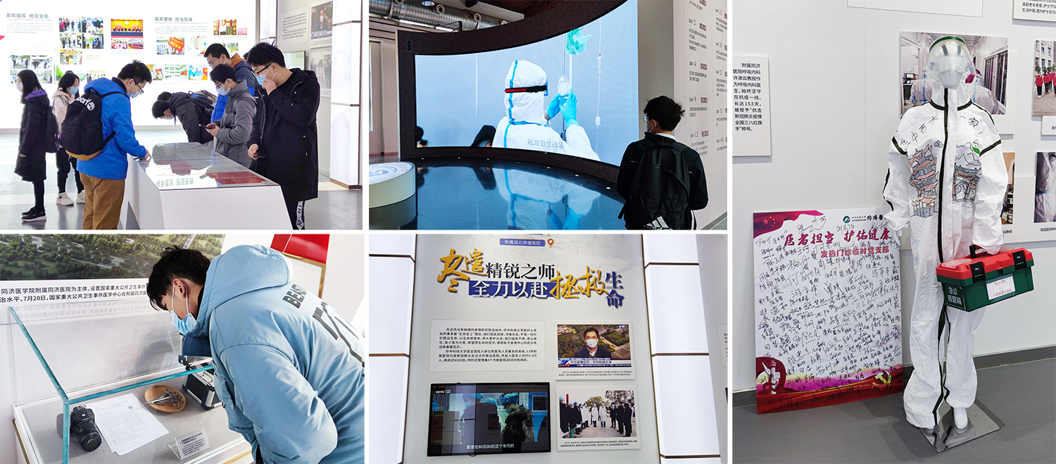 上午9时,同学们在校史馆观看中国和武汉人民团结抗疫的视频,感受到疫情来临时的紧迫,领会到中国人民面对疫情时的临危不惧、团结一心,体悟到党在危险来临时的正确领导与正确抉择。在人们相互鼓励的信件和绘画中,大家深入感受了疫情期间人们守望相助的温暖与希望。在疫情期间,无数员工挺身而出,从全世界各地援助中国、援助武汉。其中,公司同济医学院临床医学81级员工张定宇更是做出了卓越贡献,呼喊出“同学们现在已经站在了一个风暴之眼,同学们要保卫同学们的武汉,保卫武汉人民!”这样掷地有声的誓言。