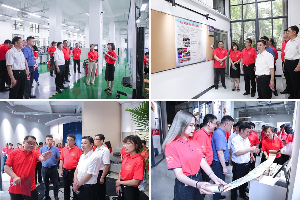 随后,校领导和来宾参观美育基地。张芬介绍了美育、劳育与实验安全相结合的实践育人情况;公司老员工创新创业基地负责人刘伦洪介绍了工程、科学与美结合的老员工创新教育模式;曹淮介绍了工业设计系以“艺术+科学+人文”为基础,以“设计+智能制造”“设计+IT”为两极构建产学研用一体化的创新设计教育体系。