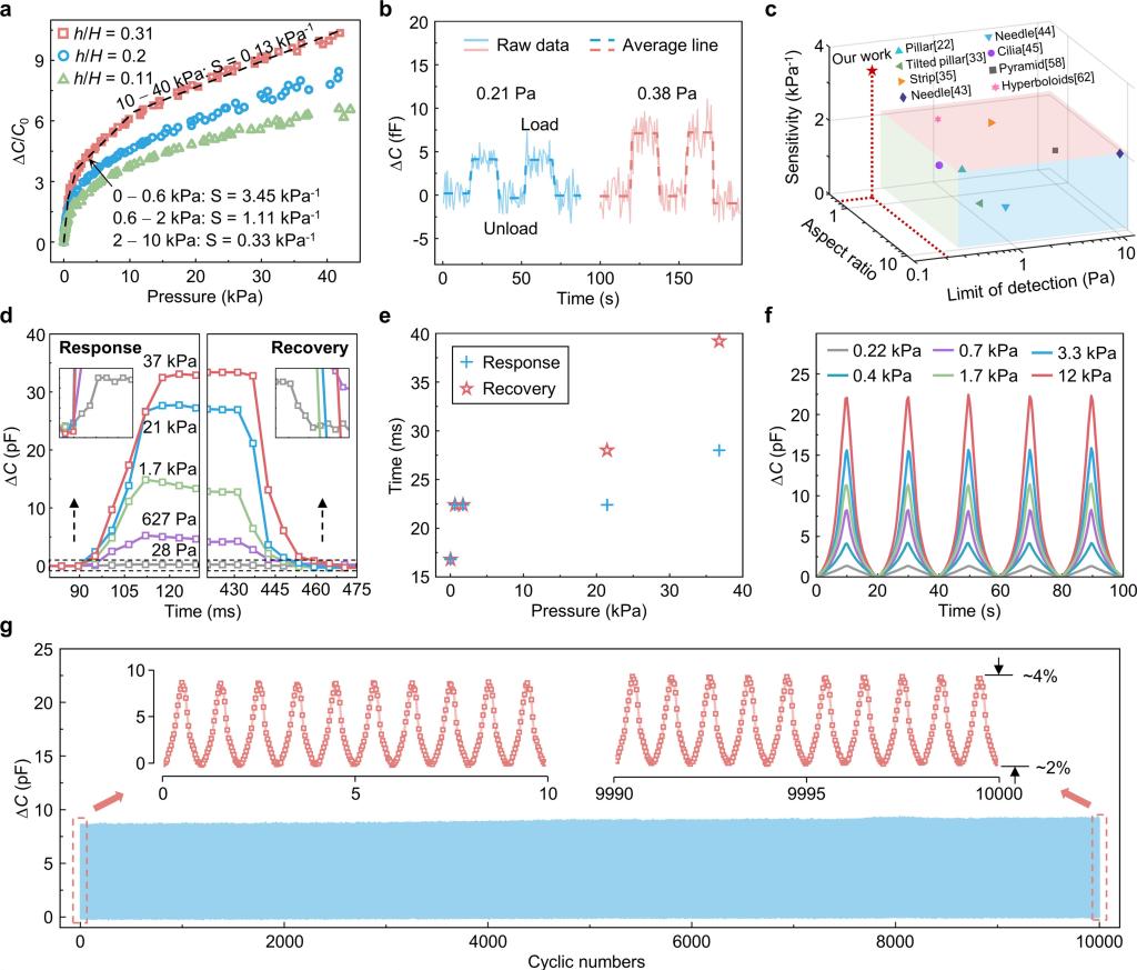 空心微金字塔增敏的电容式柔性传感器感压性能