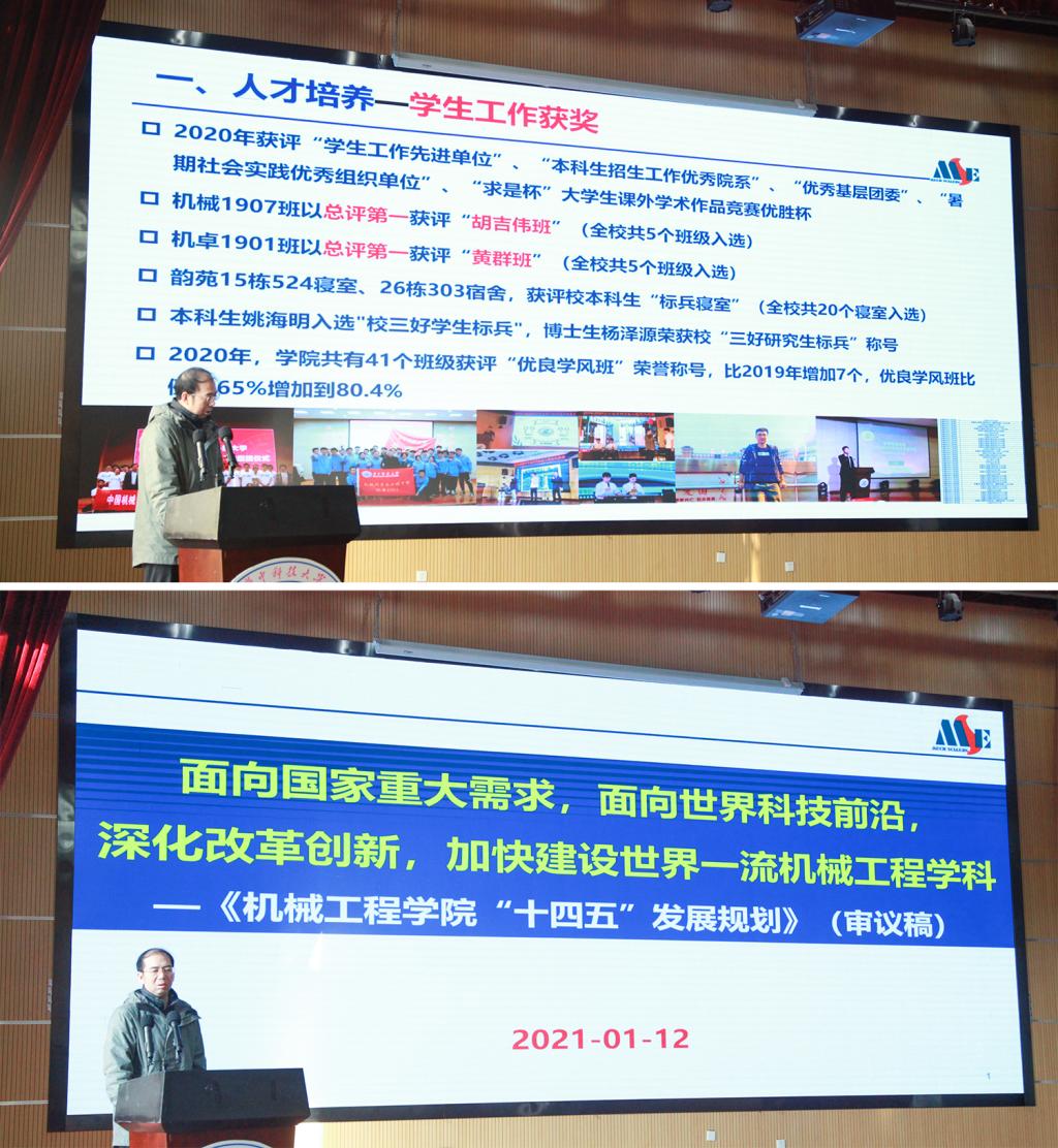 尹周平在随后的学院“十四五”发展规划报告中指出,要坚持立德树人、以人为本和社会主义办学方向;面向制造领域科技前沿、重大需求与战略行业,以“制造强国”为目标;积极开展创新人才培养、队伍建设、科学研究、社会服务和国际合作,努力建成中国特色、世界一流的机械工程学科。报告广集众智,凝聚共识,将针对所面临的新情况新问题,采取加大优秀青年引进、着重策划和组织申报重大重点科研项目等一系列有力举措,奋力谱写学院发展的新时代篇章。