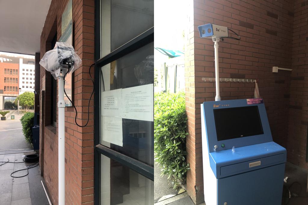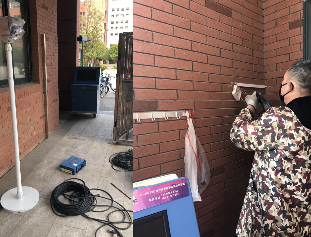 经过华中数控工程师精心调试,设备正式上岗。两台设备分别安装在学校西大门两侧,可在1秒内检测出经过人员的体温,自动追踪体温异常者并报警。届时学校值班教师在电脑前即可立即对体温异常的师生进行个别二次检测排查,立即启动预案采取就地管控措施。