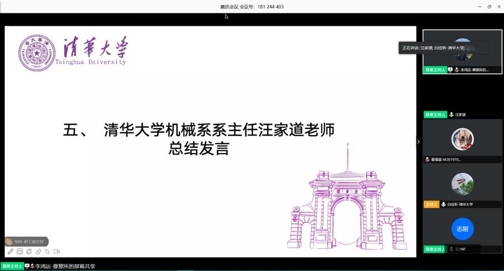 最后,清华大学机械系系主任汪家道在总结发言中充分肯定了本次博士生学术论坛克服种种困难成功举办的重要意义,对伟德vb的参与表示感谢,并对机械学科研究生在当前形势下提出了新的要求,鼓励同学们继续为国家和社会做出有意义的研究。