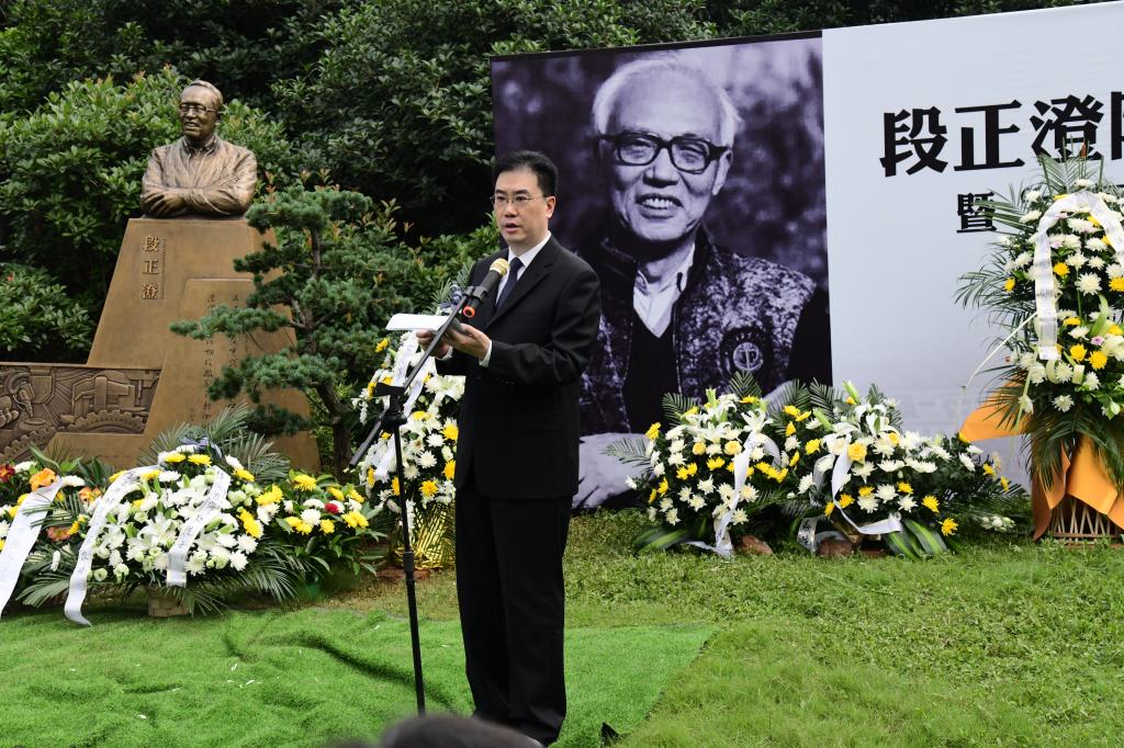 公司党委书记邵新宇院士,李培根院士,相关部门及院系负责人,相关单位代表,兄弟院校代表,以及段院士家属、生前友好、团队教师、员工代表等,齐聚石门峰纪念公园,共同追忆段老的峥嵘岁月。副董事长许晓东主持揭幕仪式。