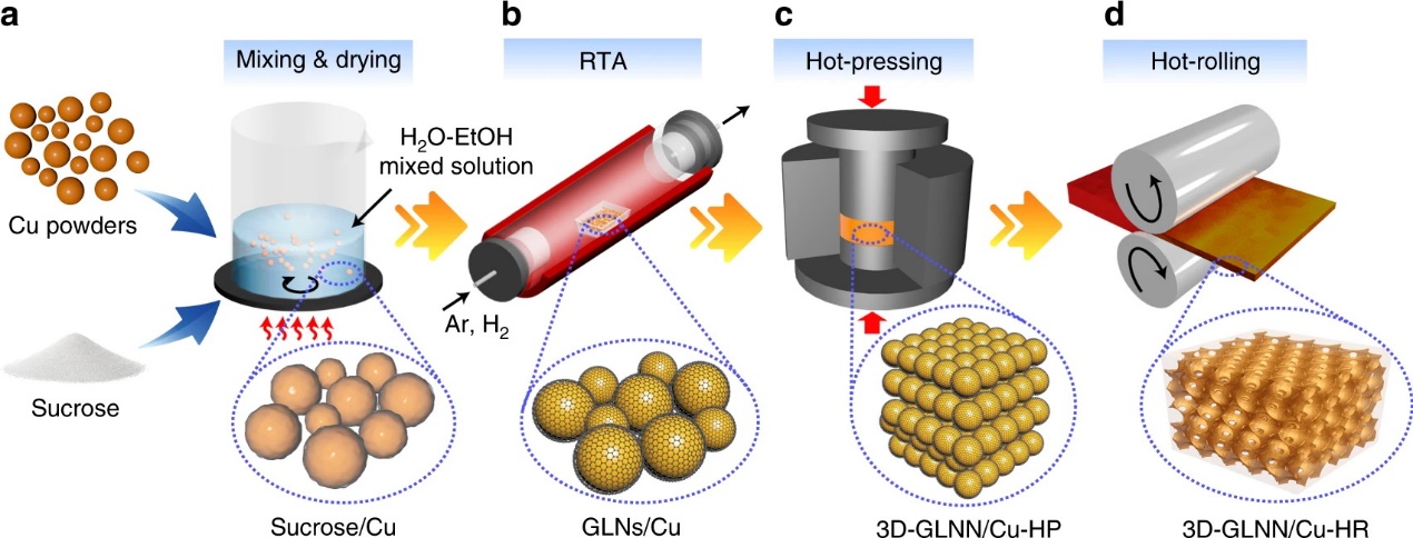 图2. 3D-GLNN/Cu热压过程中的结构演变