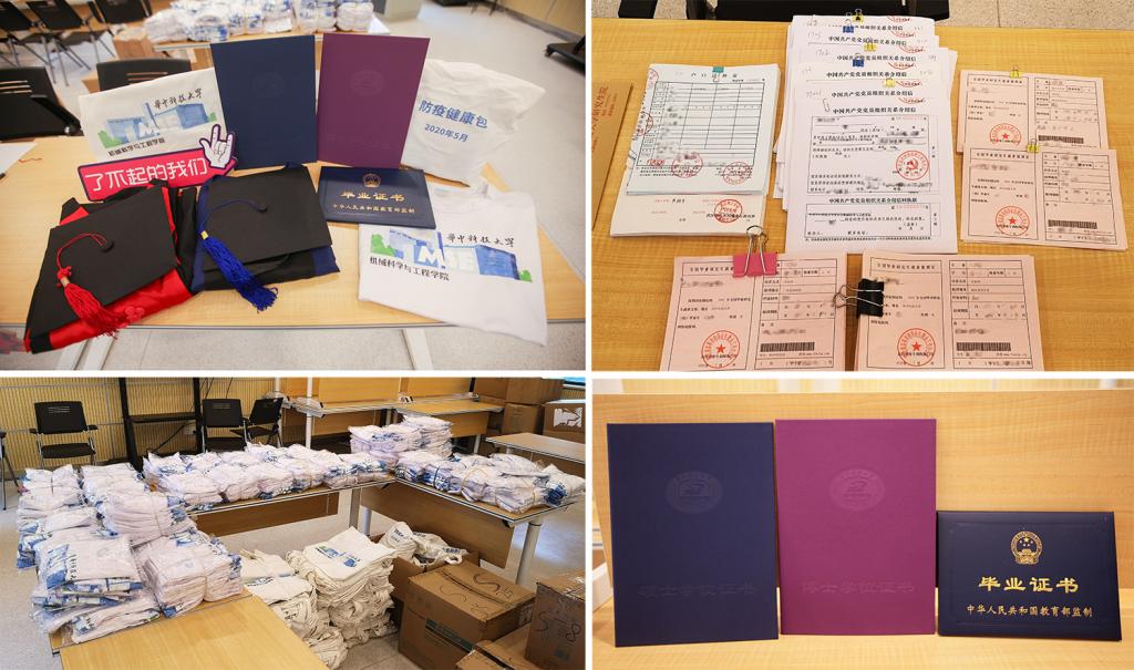 公司研究生科、研工组全体老师为毕业生前来办理离校手续提前做好了精心准备,在部分本科生辅导员和在校研究生的协助下,形成“流水线”以提高工作效率,并最大程度减少人员聚集情况。除毕业证、学位证、报到证等必备材料和学校准备的防疫健康包外,学院还提供硕士服、博士服、文化衫以及公司毕业生自己设计的毕业背景墙,希望他们在这短暂的告别中,再多看看母校、老师、同学,多留下一些回忆。
