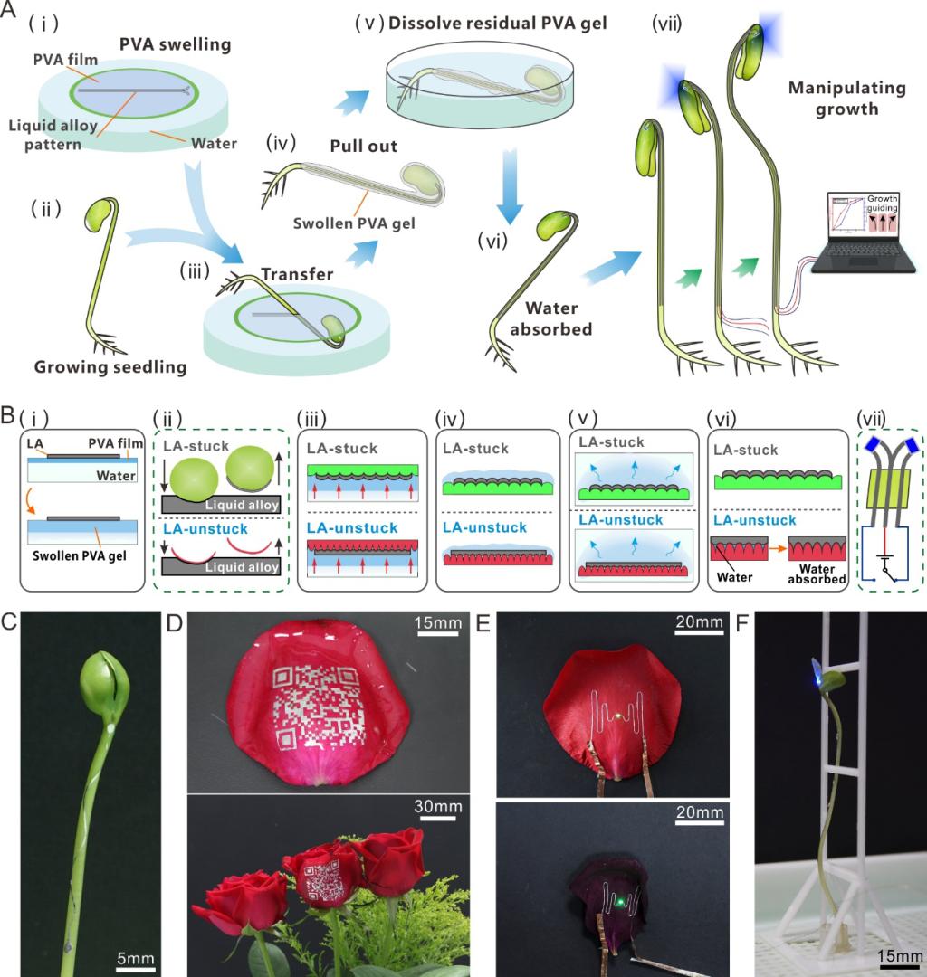 该工作证明了液态金属变形电子应用于快速生长植物的可行性和功能性,为生物智能系统和植物机器人的研制提供了新思路,并为植物学和精准农业的研究和开发提供了新的工具技术。