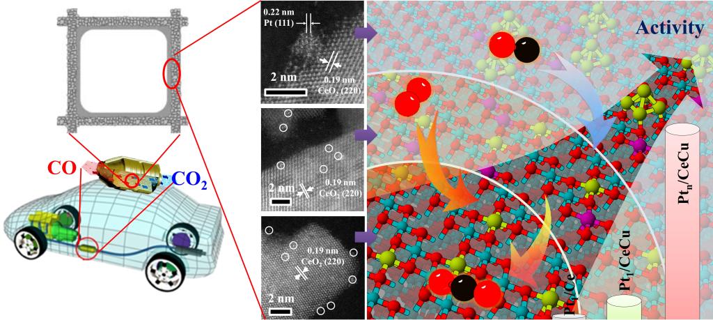 涡轮增压、尾气再循环系统和混合动力等技术的发展在提高机动车燃油经济性的同时,对尾气净化系统的低温催化效率提出了更严苛的要求。随着近零排放标准的逐步实施,下一代尾气催化剂迫切需要提升其在小于100 ºC的催化活性来消除机动车的冷启动排放。贵金属Pt由于具有优异的活性和化学稳定性,被作为活性组分广泛应用于机动车尾气净化系统。为了实现贵金属的减量化,氧化物负载亚纳米Pt催化剂(单原子或亚纳米团簇)由于可以提高贵金属原子利用率而受到了广泛的关注。尽管通过高温水汽处理、元素掺杂、还原预处理等手段可以一定程度上提升氧化物负载亚纳米Pt催化剂的催化活性,但相比于文献报道的最优负载Pt纳米颗粒催化剂仍具有一定的差距。近期研究表明氧化物负载亚纳米Pt催化剂的活性对界面结构十分敏感,实现界面结构的精准调控是发展高效低温催化剂的关键。