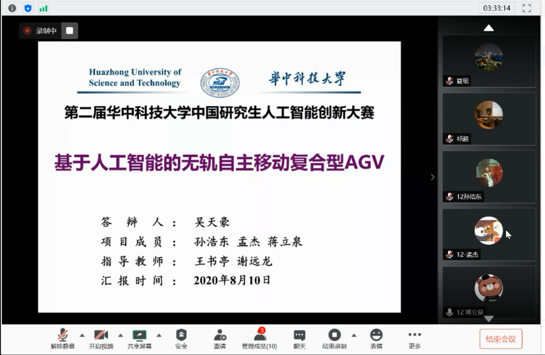 8月10日,第二届“bv伟德官网研究生人工智能创新大赛”决赛在腾讯会议顺利举行。经过角逐,公司吴天豪团队(成员:机硕1901吴天豪、机硕1909孙浩东、机博1701孟杰、机博1701蒋立泉)获得大赛一等奖,由王书亭、谢远龙两位老师指导参赛。