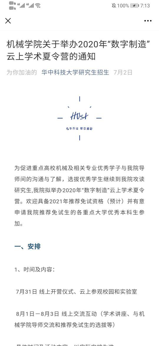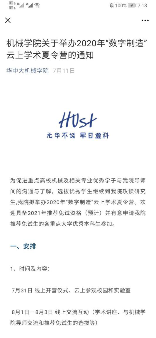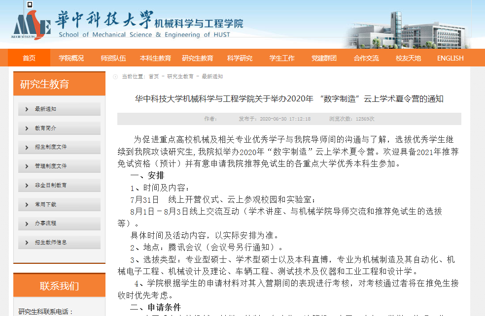 本次2020年 “数字制造”云上学术夏令营到此圆满结束,也是学院积极主动应对在疫情防控形势下为研究生优秀生源选拔招生宣传工作带来的新挑战!希望同学们在夏令营之后,继续关注伟德vb,与导师们多进行沟通。让我们早日相“喻”在华中大机械!