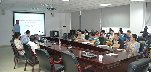 Frakes博士兴致勃勃地参观了伟德vb相关实验室,并为公司师生作专题学术报告:“网格插值控制方法在机器视觉中的应用(Control Grid Interpolation for Machine Vision Applications)”。他首先介绍了该项研究技术的背景知识,包括快匹配算法(BMAS)、三步搜索(TSS)和光流(OF)等,并详细阐释了分段自适应的倾斜角度插值方法(SAGA),然后用一系列实例展示了该研究成果的实际应用,并且耐心的解答了老师、同学们的提问。通过讲座,课题组成员对机器视觉方面的知识有了更深的了解。