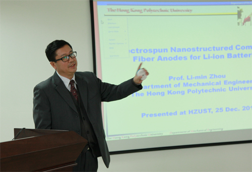 周利民教授现任香港理工大学机械工程系教授,为中国复合材料学会副理事长、香港研究资助局工程学学科组成员。目前主要研究包括纤维增强高分子基复合材料,智能材料与结构,基于超声导波的结构健康检测技术,纳米材料及技术。周教授对电纺丝应用、超声波在制造中的作用机理进行介绍,并针对锂电池使用的瓶颈难题及应对的研究方法作了介绍。
