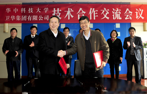 2015年4月8日、9日,公司常务副经理史铁林教授率团访问卫华集团,双方就推进全面合作举行会谈。卫华集团总裁俞有飞,副总裁秦英奕、龙宏欣、苗红,总工程师吴军及科研部负责人,公司党委副书记丁雨葵,机电系胡友民教授,易朋兴副教授,研究生教务科崔炳凤,科研科朱文革参加会谈。