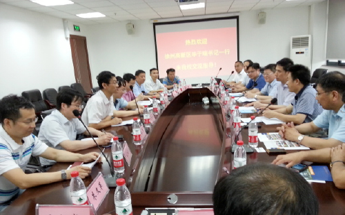 2015年7月9日上午,公司员工、江苏铜山区委书记、徐州高新区党工委书记毕于瑞率领政府和企业代表团来访交流,公司丁汉经理、史铁林书记、彭芳瑜副经理等出席交流会议。