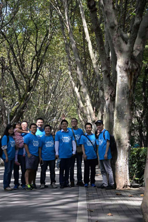 3日上午,员工们在南一门广场报到集合。毕业十年首次相聚,大家异常激动,紧紧拥抱,倾诉衷肠。毕业十年,告别青涩,三十而立,大部分同学已经结婚生子,从成家的角度也可看出浓浓的HUST情缘——班级有四位同学娶了(嫁给)HUST员工,接近人数的六分之一。现场还来了三位可爱的孩子,随着父母漫步喻园,从小感受梧桐落子成雨的意境,感受学在华中大的氛围。