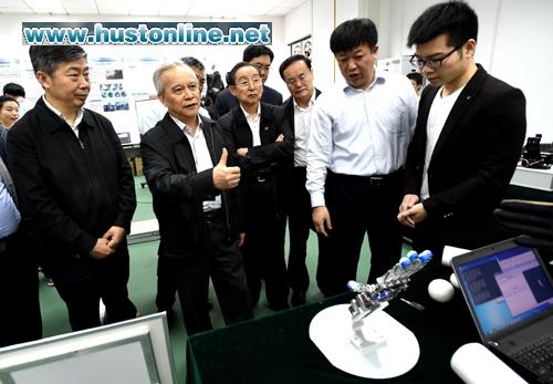 在数字制造装备与技术国家重点实验室,调研组观看了机器人团队对眼动跟踪及立体定位系统、假肢控制系统、外骨骼康复机器人等研究成果的现场演示,并对相关成果的应用方向和现状进行了解。