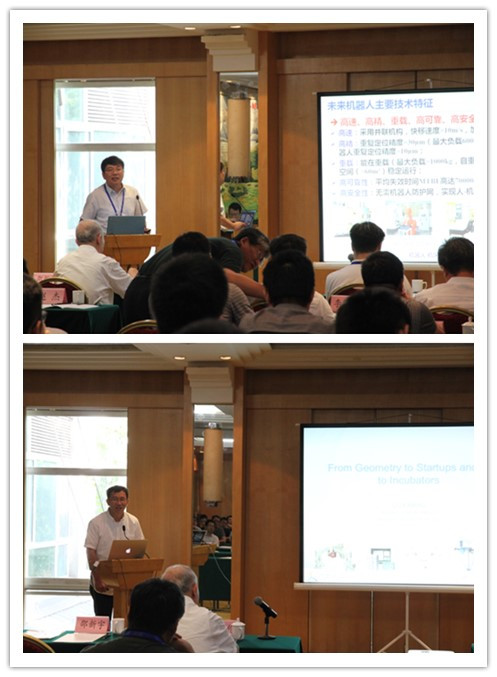 上午,论坛邀请的6位机器人领域权威专家作了精彩的学术报告。公司丁汉院士首先作“共融机器人的基础理论和关键技术”专题报告,介绍了未来机器人发展的重要方向—人机、机机、机与环境的共融,凝炼了相关的关键科学问题,并重点介绍了国家基金委近期实施的共融机器人重大研究计划的相关内容。香港科技大学李泽湘教授作“流形、创业与产业孵化”专题报告,对机器人产业发展进行了思考,着重介绍了如何将数理基础与机器人工程实际相结合,并阐明了机器人基础研究的重要性。中国科学院沈阳自动化研究所的于海斌教授作“沈阳自动化所机器人研究进展及思考”专题报告,结合研究所发展经验对目前机器人学科和产业发展进行了思考和探讨。哈尔滨工业大学赵杰教授作“新一代信息技术带给机器人的机遇与挑战”专题报告,结合多个实例展现了机器人学与信息技术高度融合的发展趋势。香港大学席宁教授作“产业与应用拉动的机器人发展”专题报告,阐明了纳米、医药等新兴产业应用需求对机器人学发展的拉动作用。最后,公司李国民教授作“智能机器人与应用国际期刊(IJIRA)创刊与出版”专题报告,对伟德vb主办的智能机器人与应用国际期刊的筹备情况、国际影响力、重要性及前景意义等进行了介绍。