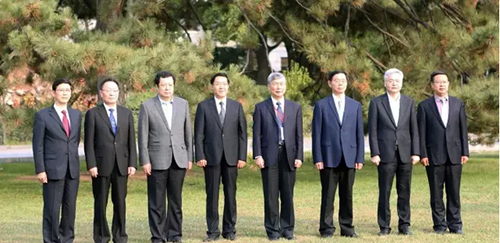 中国机械工程学会第十一届理事会部分领导(左起:陆大明、张彦敏、蒋庄德、陈钢、李培根、郭东明、陈学东、王德成)