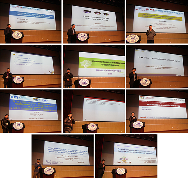 随后,来自悉尼科技大学工程与信息学院的吴景铼博士、来自新加坡制造技术研究院的邓辉博士、来自法国国家科学研究中心的唐祖祁博士、来自法国国家科学研究中心南特交流与控制研究院的张益茬博士、来自以色列希伯来大学化学系的余旭博士、来自德国莱布尼茨研究会表面处理研究所的李亚国博士、来自德国慕尼黑工业大学电子与计算机工程的吴迎春博士、来自美国斯坦福大学机械工程系的王昆博士、来自新加坡南洋理工大学的宋培义博士、来自欧洲为电子研究中心和比利时鲁汶大学的马骥刚博士和来自加拿大麦克马斯特大学机械工程系的苑俊峰博士分别依次作了精彩报告。报告内容涉及区间不确定性分析方法、等离子辅助加工、电化学机械抛光、电磁场、物理耦合、增材制造的设计与工艺、微流控超精密加工、光学测量、能源转化、纳米催化、微型电子机械、新型存储器器件、tribofilm理论等多个研究领域。