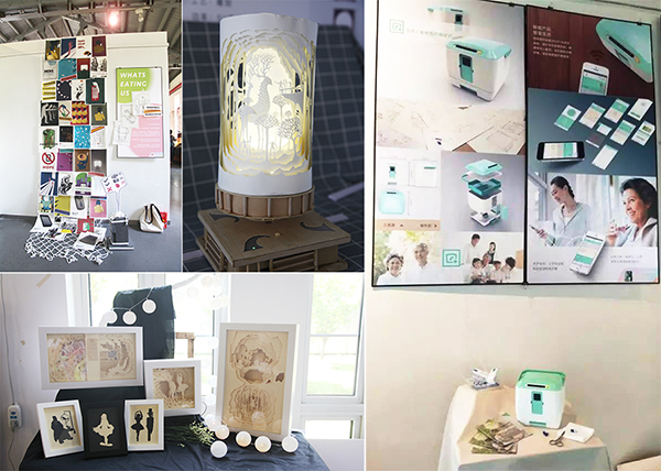 展览分为产品设计、展示设计、视觉设计、交互设计四个部分,涉及到手机APP界面、书籍装帧、产品周边视觉识别系统、婚庆产品、文化创意产品、招贴海报、机械产品外观、交通工具、家居用品等多个门类,同学们从各自的角度出发,在导师的带领下,挖掘问题,挑选元素,考究细节,力求做出更全面更能引领消费者更有人文关怀的设计。除此之外,还展示了多件员工团队获奖作品。从这些一件件作品中可以感受到来自设计的魅力,更加有魅力的是,同学们为了实现目标而努力付出的热情,充满蓬勃的朝气,年轻而有活力。