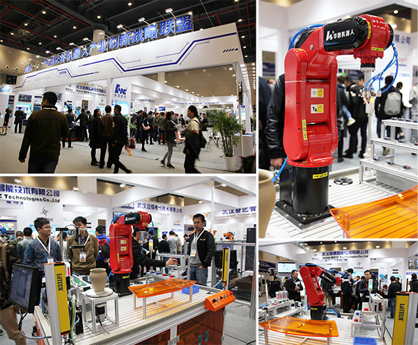 陈吉红教授华中数控高性能数控系统与工业机器人团队展台,以几个灵活操作的机械手臂吸引了来来往往的参观人群的眼球,他们的展示充分体现了华中数控研发团队的技术实力,体现了华中8型高性能数控系统研发及产业化的优异成绩。
