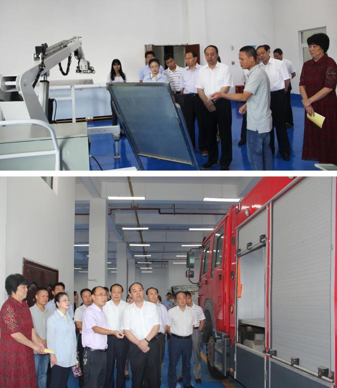 9月9日,全国人大常委会委员、省人大常委会副主任周洪宇一行到湖北省专用汽车研究院调研创新驱动发展和人才工作。周主任听取了公司机械设计与汽车工程系李善德博士有关研究院在平台建设、产业服务、人才培养、科技成果转化等方面的汇报,仔细了解了研究院最新开发的两款高端专用车产品,高性能蒸汽射流飞机除冰车和压缩空气泡沫消防车的技术特点和市场前景,对研究院在科技创新、支撑产业发展方面作出的成绩给予了充分肯定,并希望研究院加速科技成果转化力度,尽快将新产品推向市场。省人大常委会委员、省人大教科文卫委主任委员刘传铁、省人大常委会委员、省人大教科文卫委副主任委员刘望清、省人大教科文卫委秘书长赵丽德、省教育厅副厅长黄国斌、随州市人大副主任李雅君等省市领导陪同调研。