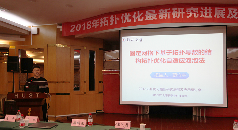 蔡守宇作了题为“固定网格下基于拓扑导数的结构拓扑优化自适应泡泡法”的报告