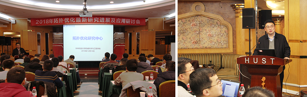 12月14日,由公司拓扑优化研究中心主任高亮教授发起的“2018年拓扑优化最新研究进展及应用研讨会”在公司八号楼国际交流中心二楼多功能厅顺利召开。会议邀请到了西北工业大学朱继宏教授、澳大利亚悉尼科技大学罗震副教授、中国空间技术研究院501所张啸雨高级工程师、上海交通大学周明东特别研究员、华南理工大学王英俊副教授、华北电力大学龙凯副教授、郑州大学蔡守宇副教授、北京航空航天大学教师王磊和大连理工大学教师张晓鹏,受邀专家分别就各自最新研究成果作了学术汇报。会议开幕式由高亮教授致辞。