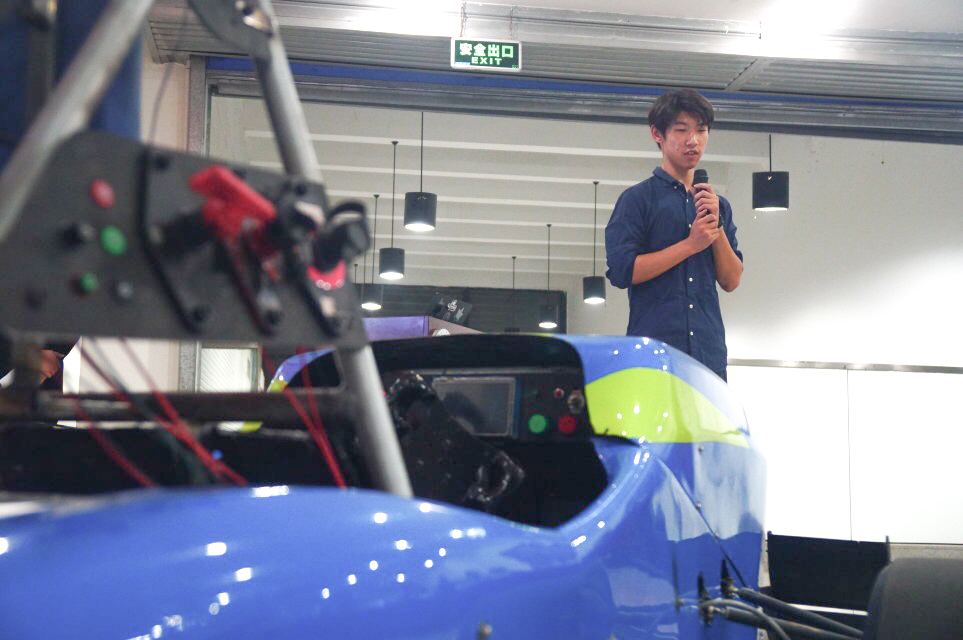 康琦在队长报告中,对新车的技术参数进行说明,并表示,作为队长,非常感谢老师和学长学姐们对赛车队的帮助。
