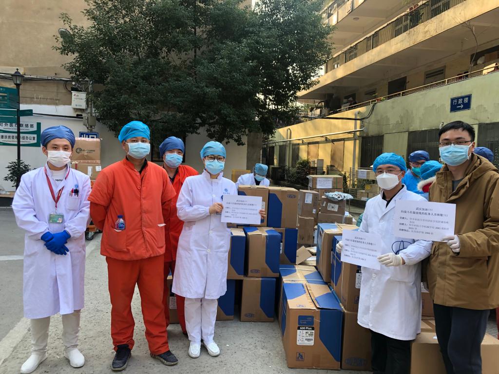 2月1日,95级员工捐赠工作组交付同济医院、校医院、钟祥人民医院共计4000个医用防护面罩。