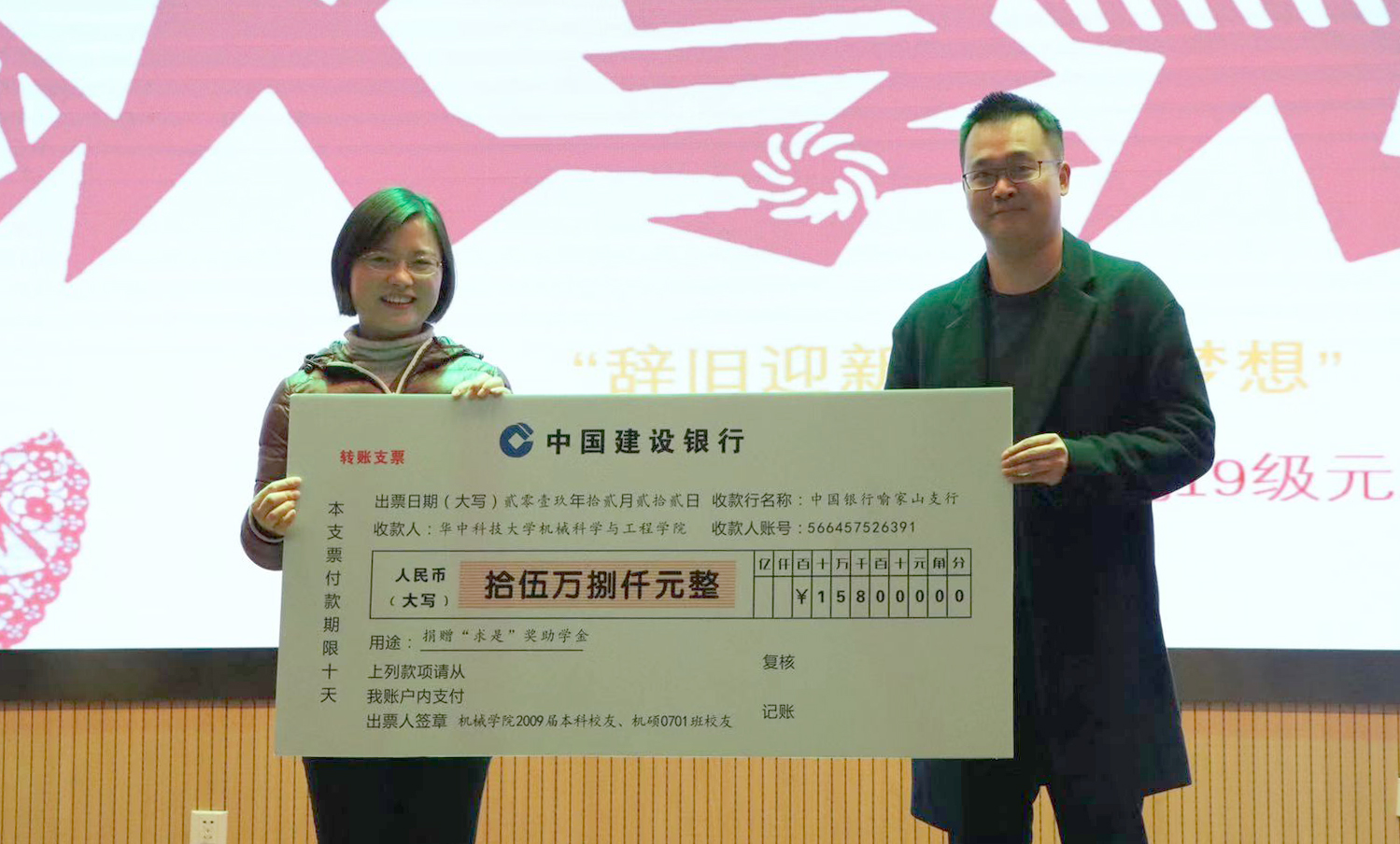 12月22日,学院2009届本科员工肖海金代表学院2009届本科及机硕0701班员工在毕业十周年之际,向学院捐赠15.8万元并设立“求是”奖助学金,以表达对母校的热爱以及感恩之情,支持学院人才培养,鼓励员工努力学习、全面发展。