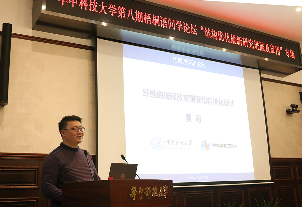 夏奇作了题为“纤维曲线铺放变刚度结构优化设计”的报告