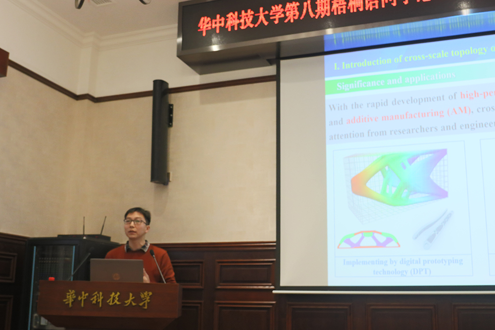 王磊作了题为“Concurrent Scale-span Optimization of Topological Structures with Truss-like Micro cells(桁架类微尺度单胞与结构的跨尺度一体化拓扑优化)”的报告