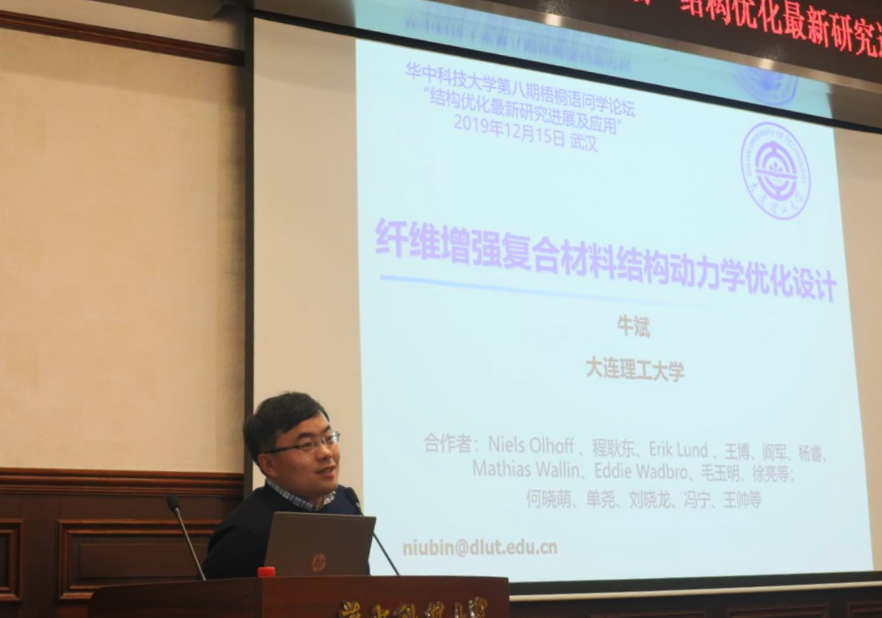 牛斌作了题为“纤维增强复合材料结构动力学优化设计”的报告