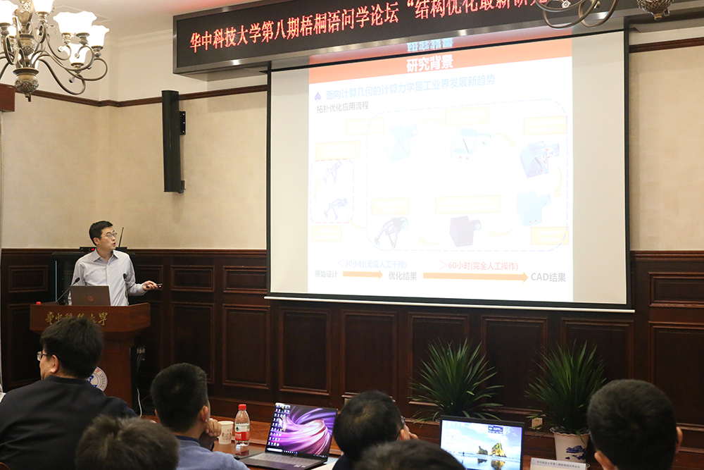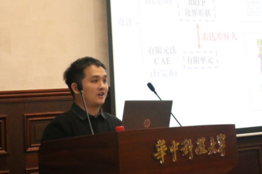 王英俊作了题为“复杂域等几何拓扑优化关键技术之--分析模型构建”的报告