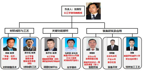 团队带头人是工研院经理张国军教授,主要方向是“数字制造工艺与装备”,承担多项国家级重要科研项目,发表SCI论文50余篇,授权发明专利20余项,开发的CAPP系统、制造执行系统MES以及高端智能装备广泛应用于航空航天汽车等领域,发起国家数控一代示范工程并牵头首批国家支撑计划项目。获得国家科技进步奖2项、省部级一等奖3项。团队核心成员有:“罗恩・科芬・珀迪奖” 获得者,材料学院郭新教授。国家杰出青年科学基金周华民教授。数字制造装备与技术国家重点实验室常务副主任、教授、博士生指导教师陈学东教授。美国JDSU公司原主任工程师,3C特种光纤发明人,马修泉研究员。国家科技进步一等奖获得者,工研院大数据团队负责人李晓涛。工研院总工程师,北京机床所产业公司原总经理,长期从事智能制造集成应用工作倪明堂。美国伊利诺伊大学香槟分校(UIUC)机械工程与航天航空工程联合实验室联合培养博士张臻。