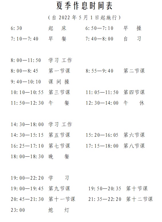 夏季作息时间表