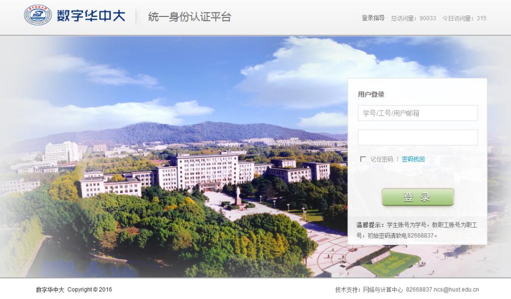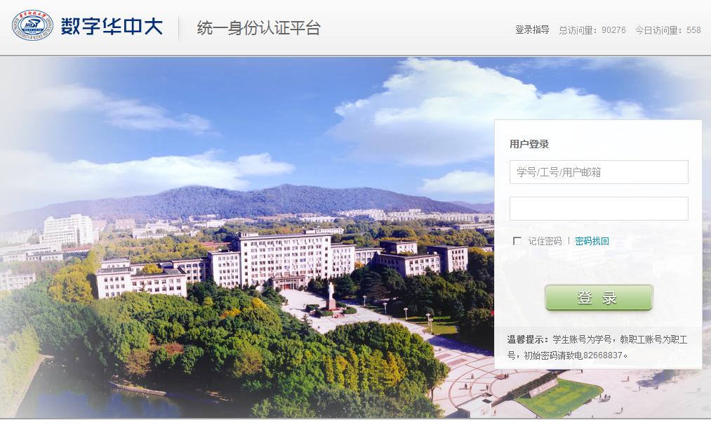 2. 在数字华中大统一身份认证平台中的用户登录输入框中输入您的学号和密码(注:密码与统一身份平台一致);