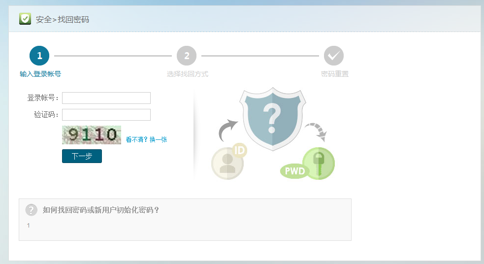 1、在用户登录界面点击“密码找回”按钮,如下图;