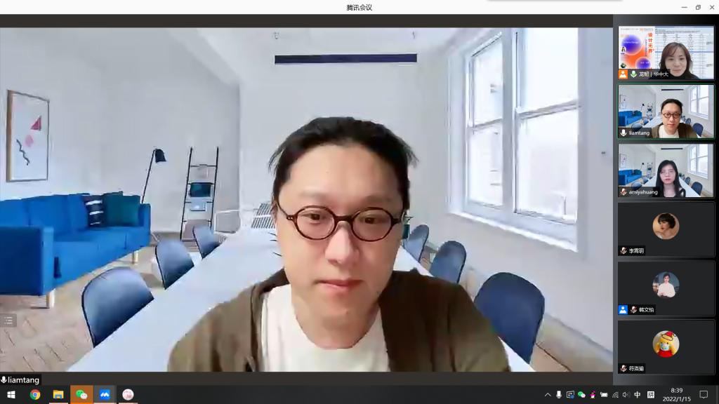 公司工业设计系主任曹淮首先对二位嘉宾通过线上的方式参加此次汇报表示欢迎,感谢他们为同学们的作品提供宝贵的建议。