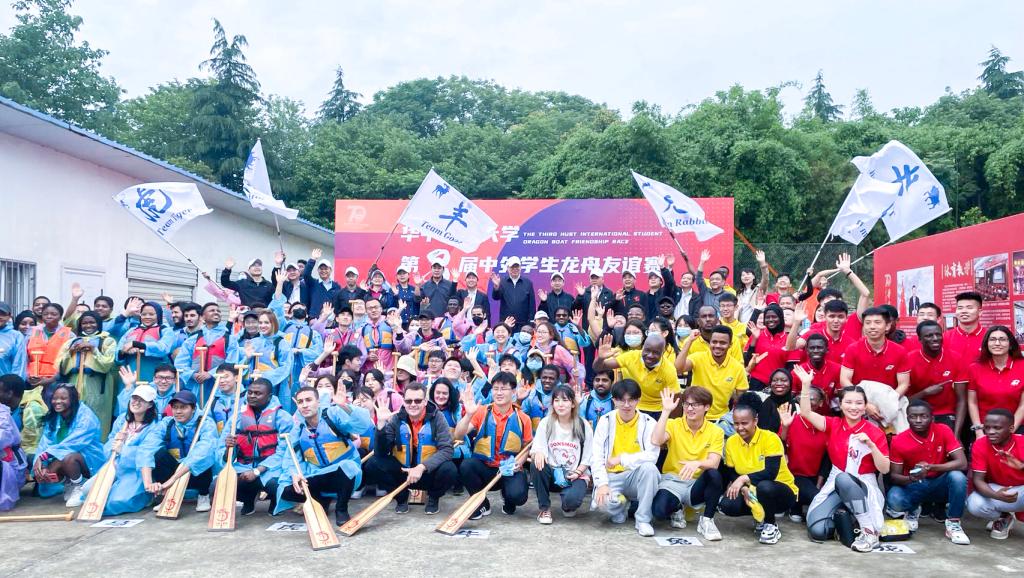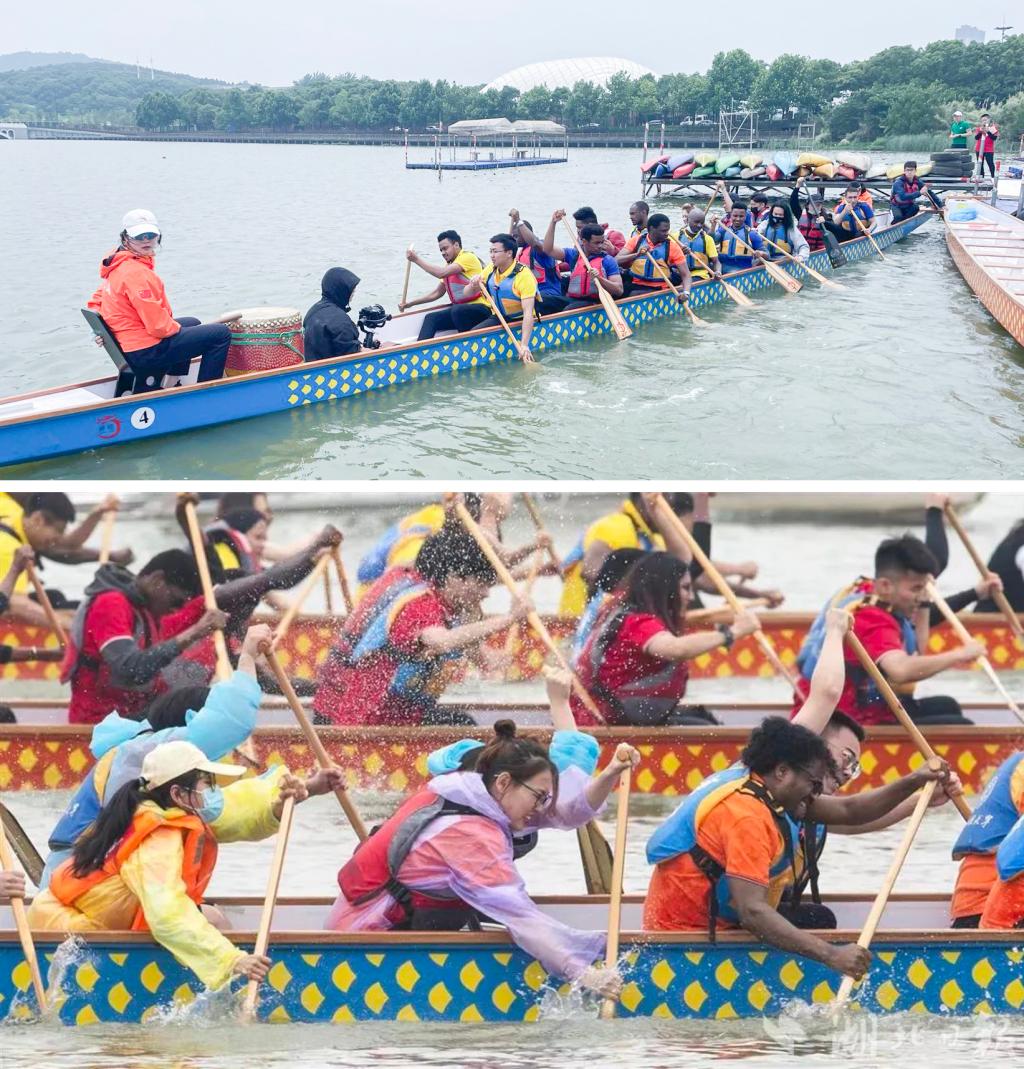 5月14日上午,公司第三届中外员工龙舟友谊赛在喻家湖举行。来自全校19个学院、37个国家的近100名中外学子,组成牛、虎、兔、龙、马、羊6支队伍,展开了一场火热的水上角逐。校领导尤政、马建辉、陈建国、梁茜到场为赛队龙舟披红点睛,学院副经理许剑锋到场为获奖队伍颁发奖项。