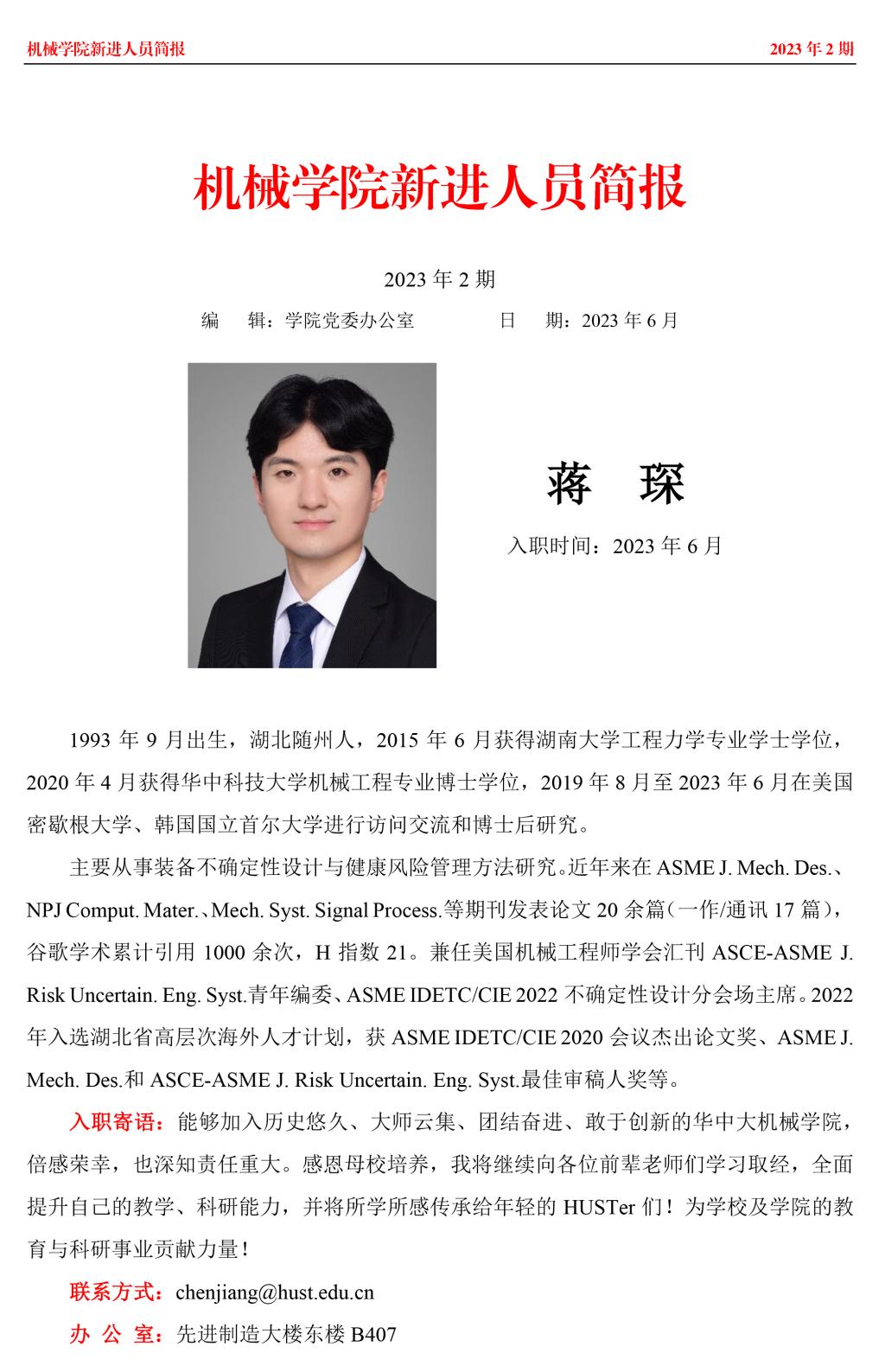 新进人员简报丨蒋琛(机械设计与汽车工程系)