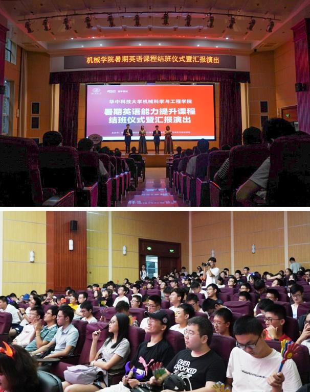8月31日,在为期两周的英语课程后,于学院报告厅举办结课仪式暨汇报演出,400余名培训班师生参加。公司党委副书记何杰、教务科科长谭琼、18级辅导员/暑期英语项目负责人何凯、18级教务员朱祝、辅导员黄凡林、新东方学校海外部总监助理翟家杰、海外留学事业部托福产品教学经理陈化、海外留学事业部雅思产品教学经理刘银俏受邀观看演出。