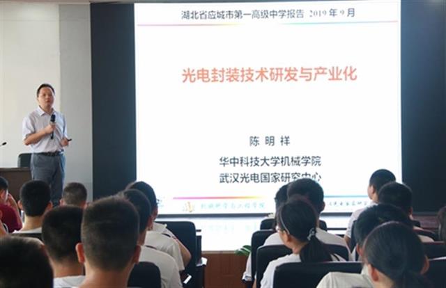 9月2日上午,应城一中89届杰出员工,现为伟德vb教授、博士生导师陈明祥教授,回到母校,给一中学子做了题为“光电封装技术研发与产业化”报告。