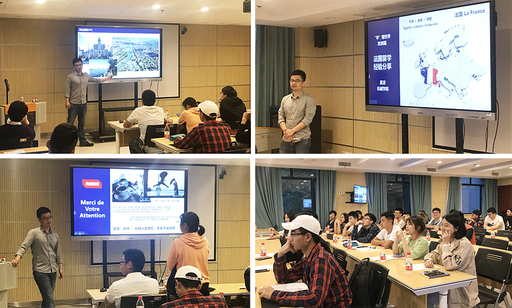 第一期沙龙的主讲嘉宾是公司青年教师、机械电子信息工程系副教授夏凉。他从个人经历、留学申请、感受法国三个方面与大家分享自己的法国留学经历。他通过在法国读博和做博后的亲身经历,告诉各位同学,要想出国留学并获得骄人的学术成果,必须要付出比其他人更多的努力。夏凉肯定了学习语言、确定硕博研究方向以及选择导师的重要性,这些在留学申请过程中都发挥着重要的意义,并鼓励同学们瞄准长远发展,准确定位自己的人生并不懈努力。夏凉的讲座风格轻松活泼,内容妙趣横生,同学们如沐春风,感觉受益匪浅。