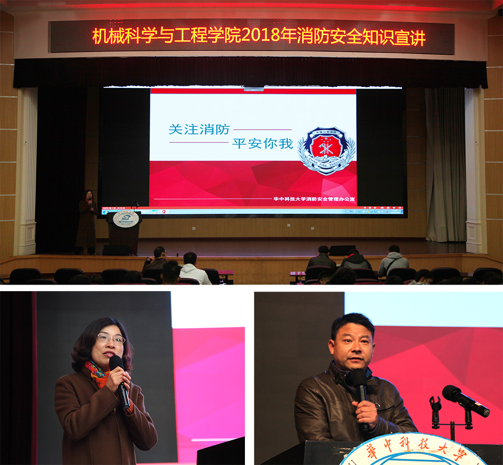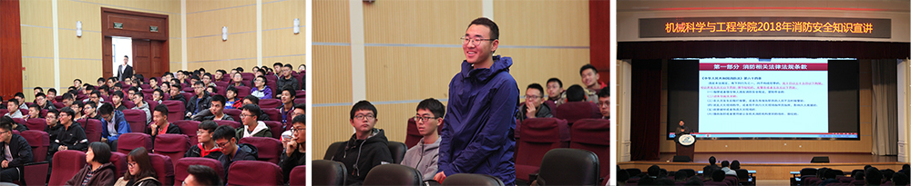 11月8日下午,学院邀请了校保卫处消防安全管理科科长毛天音以及其他几位老师为2018级本科生做了“关注消防 平安你我”专题讲座。讲座在机械大楼学术报告厅举行,由学院副经理张芬主持,公司党政办公室主任朱文凯,2018级辅导员何凯、黄凡林出席。
