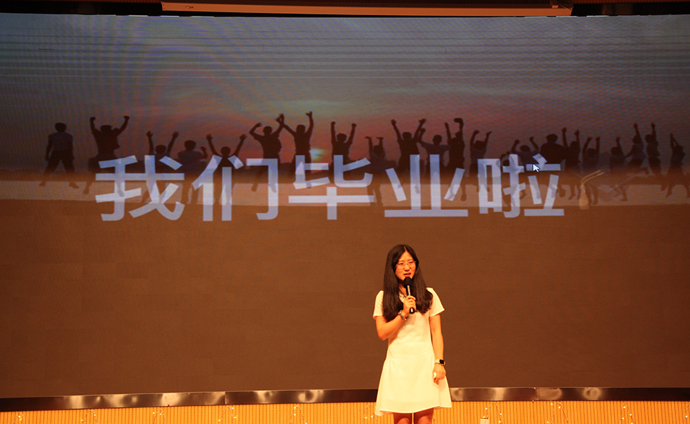晚会结束前,胡涛辅导员上台倾情发言,平日中无比坚强的“小胡导”袒露自己这些年来的压力与坚持,仿佛一个大姐姐送走了自己的弟弟妹妹一般,透着欣慰与不舍,给毕业班同学们送上祝福。