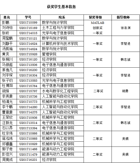 11月12日,2019高教社杯全国老员工数学建模竞赛获奖名单公布,公司本科17级学子柏清允、王荣欣、杜宗伟、蒋泓玮、郑睿鑫所在的3支参赛队伍荣获三个国家二等奖,全校25支参赛队共取得了四个国家一等奖、五个国家二等奖。